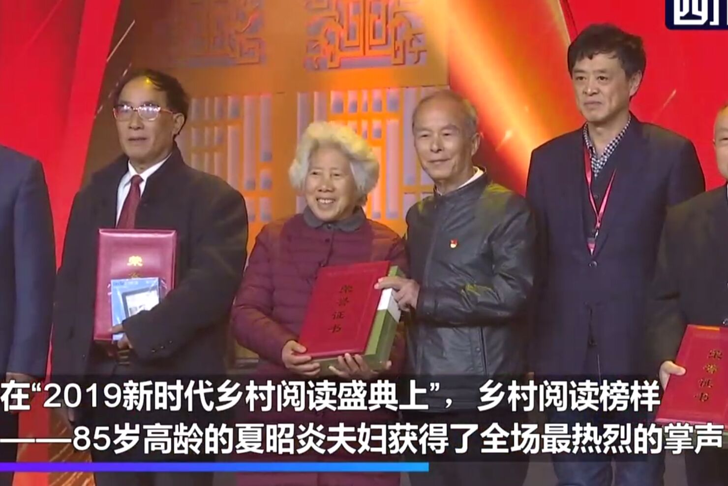 12月30日下午举行的“2019新时代乡村阅读盛典”上,夏昭炎夫妇荣获“乡村阅读榜样”荣誉称号。颁奖典礼上,全场观众对85岁高龄夫妇致以热烈的掌声。