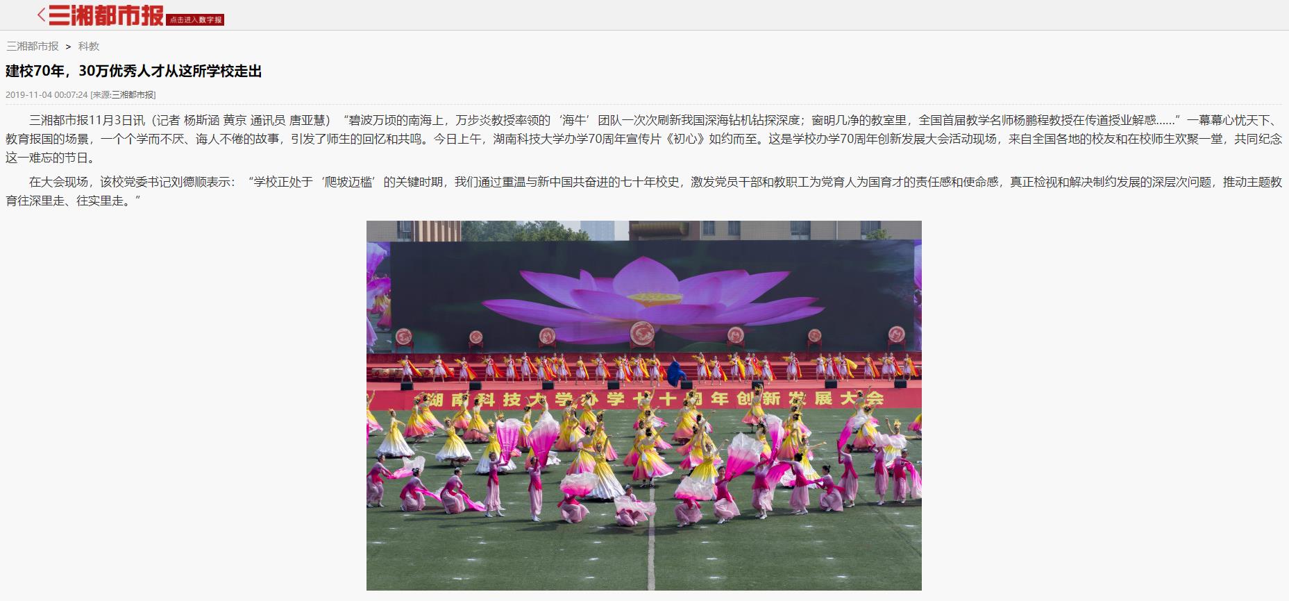 目前,已有近30万莘莘学子,从这里走向社会,立足基层,任劳任怨,乐于奉献,在祖国的各条战线建功立业。“立足社会需求,聚焦学术前沿,努力成为经济社会发展的‘思想库’‘智力源’,服务好创新型国家建设,是湖南科大人在新时代的不懈追求,也是对“心忧天下、敢为人先”的最新诠释。”该校校长朱川曲说。